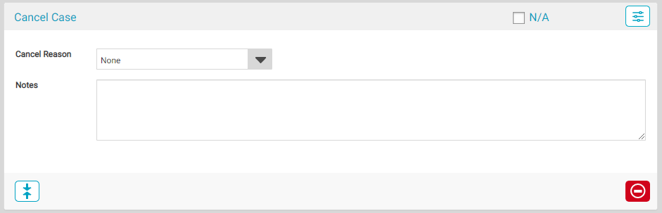 • If the Cancel Case BLOC is added to Intra-Op, the cancel reason drop-down is disabled. Enter the cancel reason in the Notes areas.