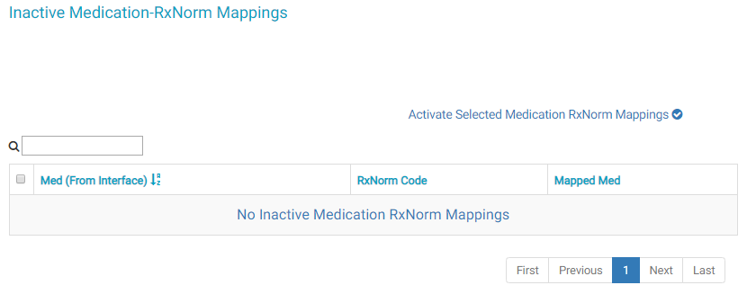 The Mapped RxNorm Medications and RxNorm Inactive Medications areas are only applicable to centers that use an outside patient portal that utilizes SNOMED or another medication database. Centers can map and activate medications from those sources here.